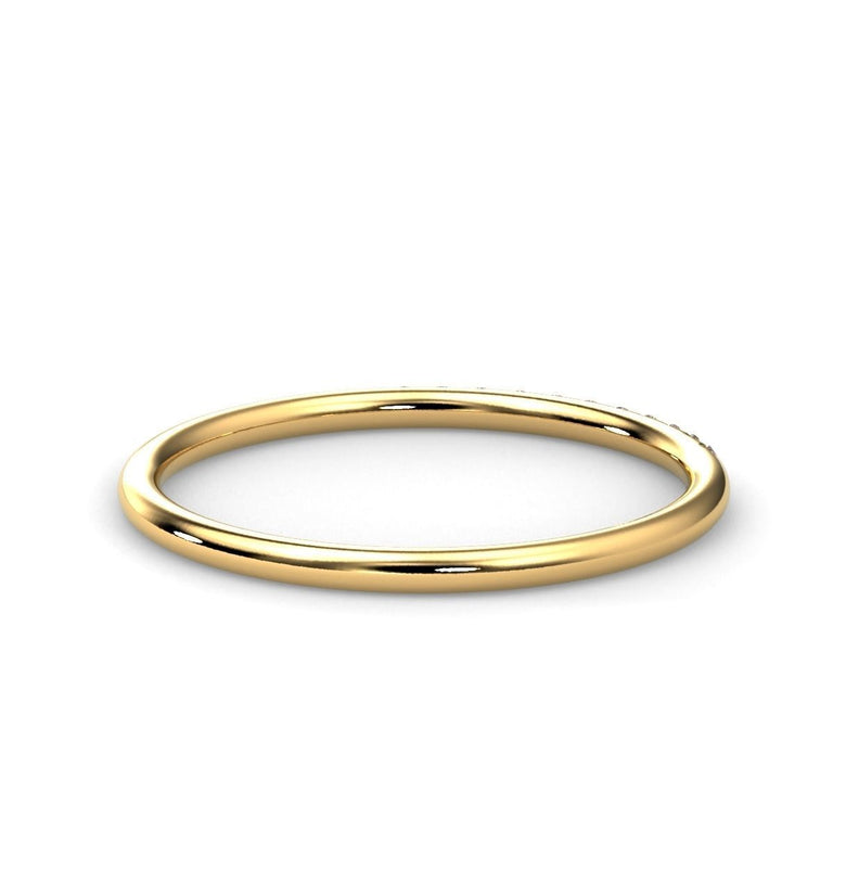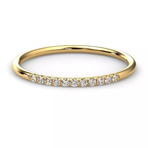 Tento snubní prsten je stvořen pro ty, kteří hledají decentní, a přesto nepřehlédnutelný šperk. Jeho jemný design zdobí 11 precizně zasazených přírodních diamantů o průměru 1,20 mm, které společně vytvářejí nepřerušovanou třpytivou linii. Každý diamant září čistotou a brilancí, a dohromady představují symboliku pevného a harmonického svazku.