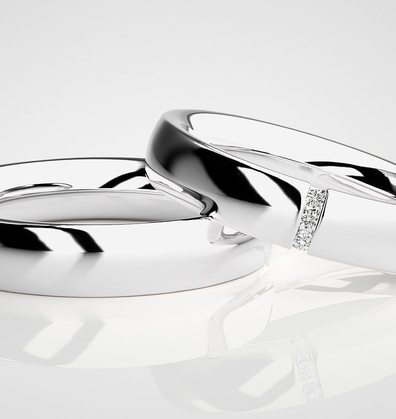 Pánský prsten je vyroben v čistém a elegantním lesklém designu, který působí moderně a nadčasově. Na přání jej můžeme také vyrobit v matu, aby dokonale ladil s dámskou variantou.