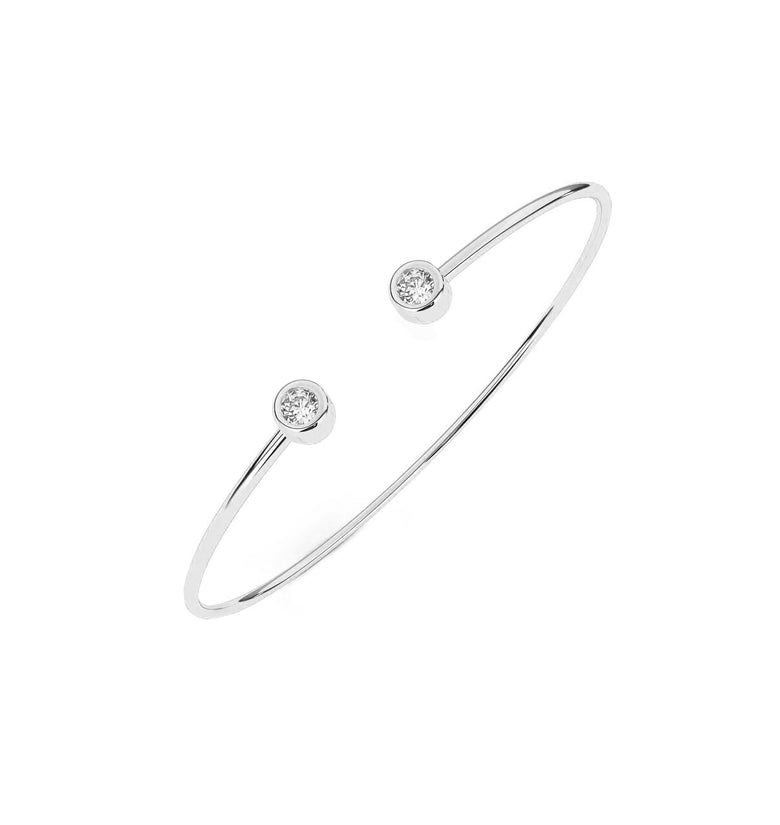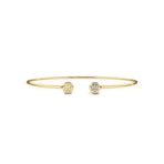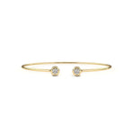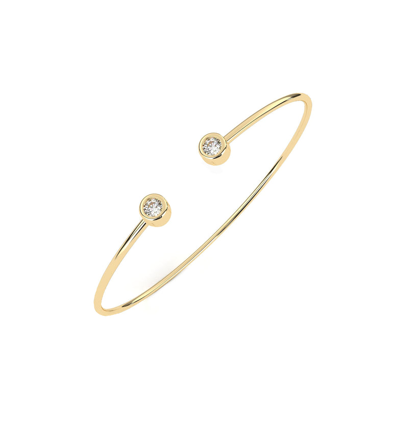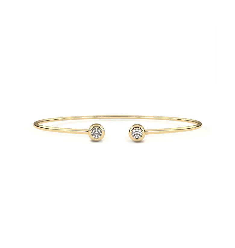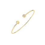 Tento kulatý náramek je pečlivě zhotoven ze zlutáho, bílého nebo růžového zlata podle vašeho výběru a vyniká minimalistickým, přesto výrazným designem. Dominantou jsou vsazené přírodní diamanty – na výběr máte variantu se dvěma drobnými diamanty nebo luxusní provedení s jedním centrálním diamantem o velikosti 3 mm, který dodává náramku oslnivý třpyt.