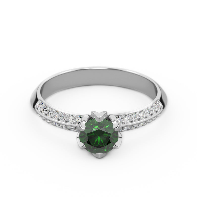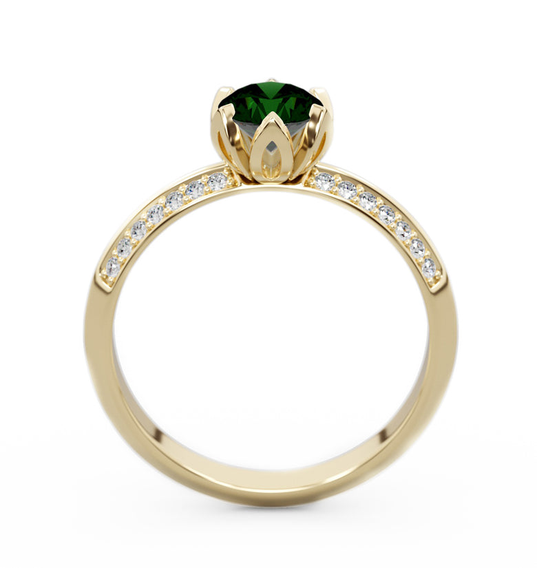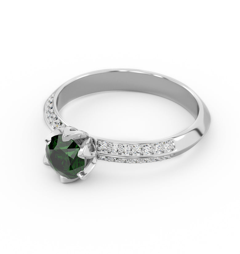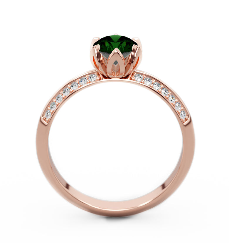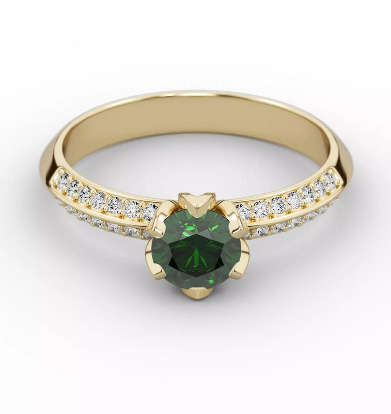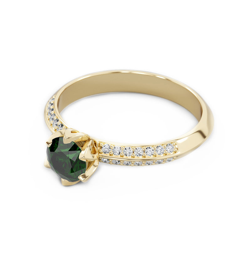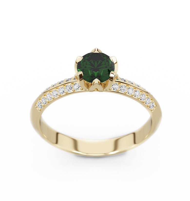 Centrální kámen: přírodní smaragd kulatého tvaru (5–7 mm), případně syntetický smaragd