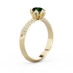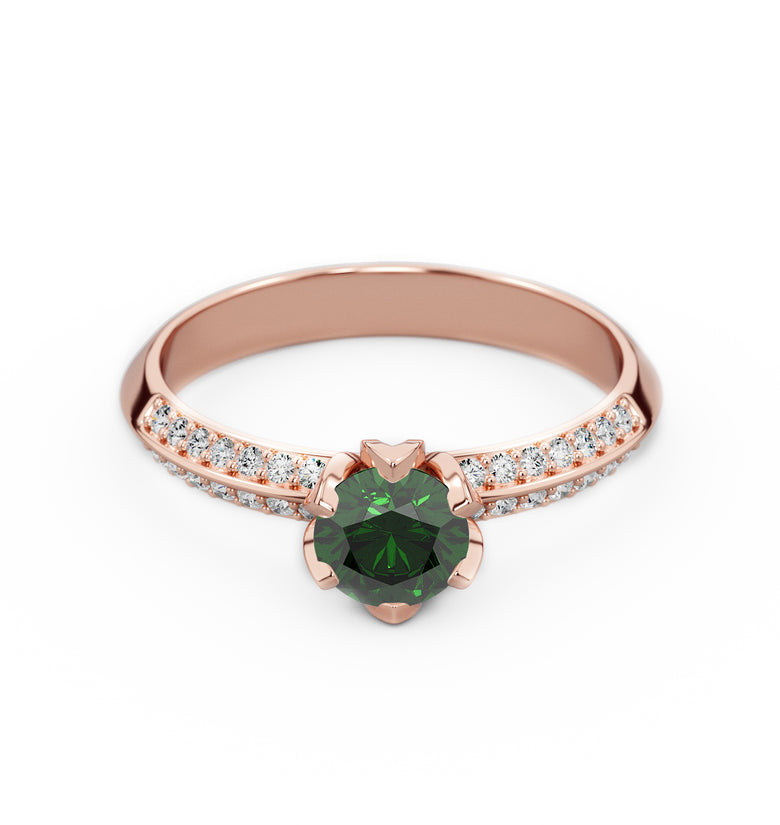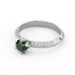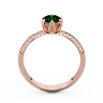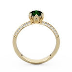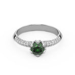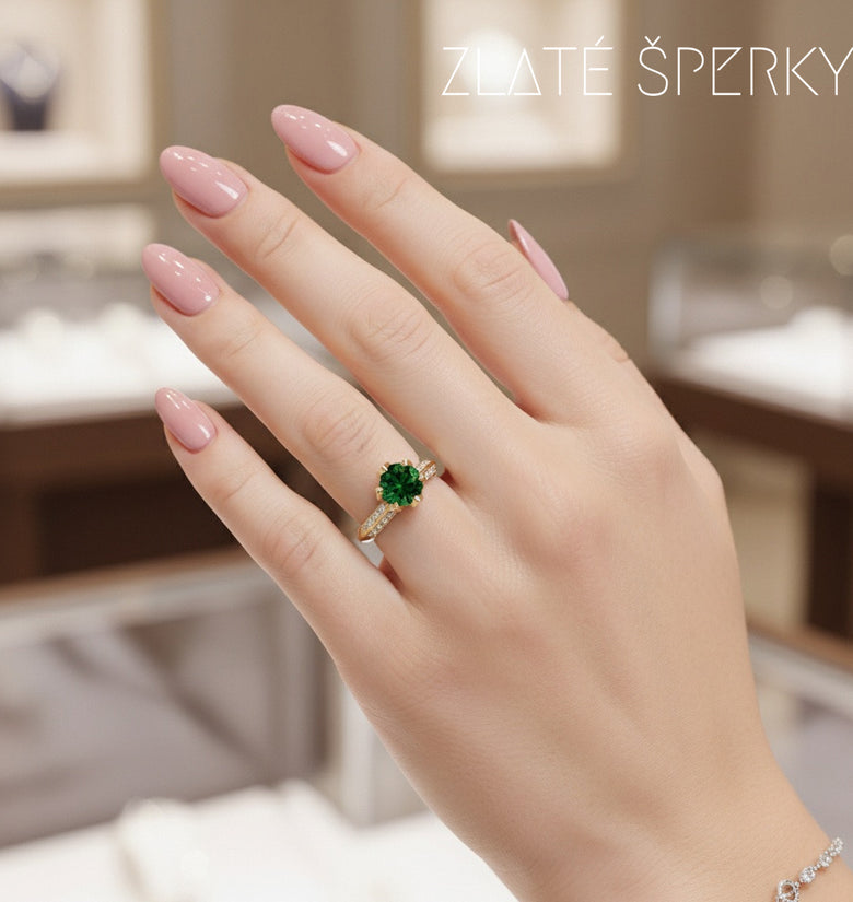 Tento nádherný prsten je stvořen pro výjimečné chvíle, kdy chcete vyjádřit lásku tím nejvzácnějším způsobem. Jeho dominantou je přírodní kulatý smaragd o velikosti 5–7 mm, kámen, který je odpradávna spojován s věrností, harmonií a nadějí. Smaragd dodává prstenu nezaměnitelný charakter a díky své sytě zelené barvě okamžitě upoutá pozornost.