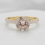 Po stranách šíny je prsten ozdoben celkem 14 drobnými laboratorními diamanty, které jemně zvýrazňují centrální kámen a dodávají šperku vyvážený třpyt bez rušivého efektu.