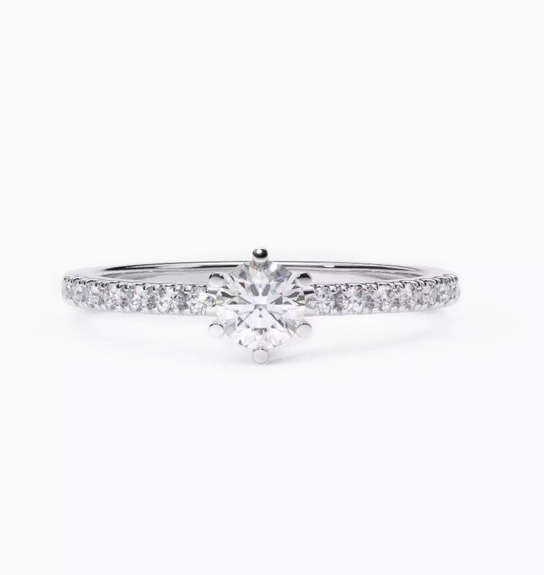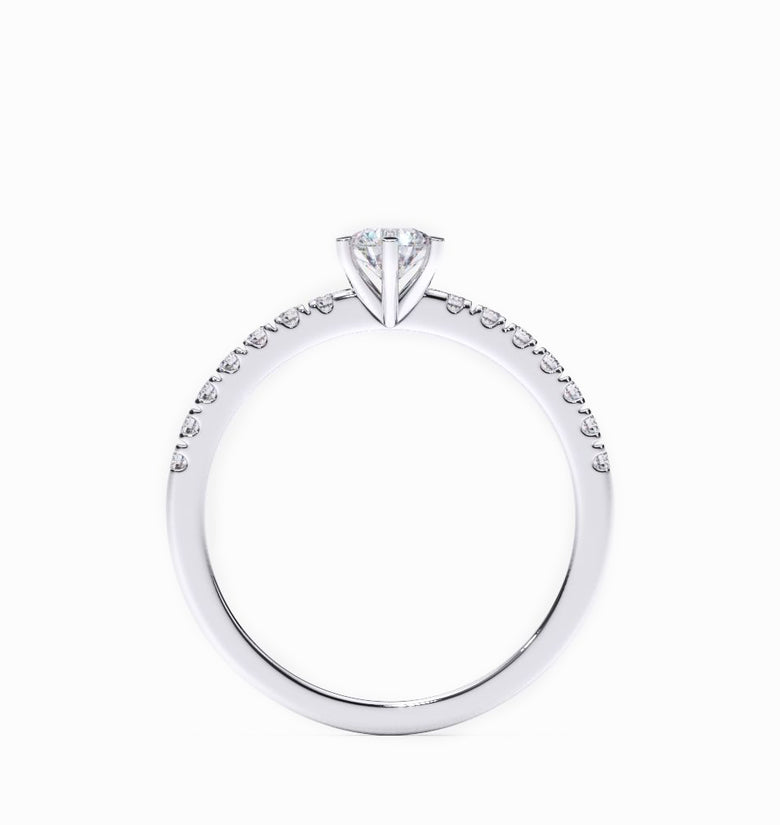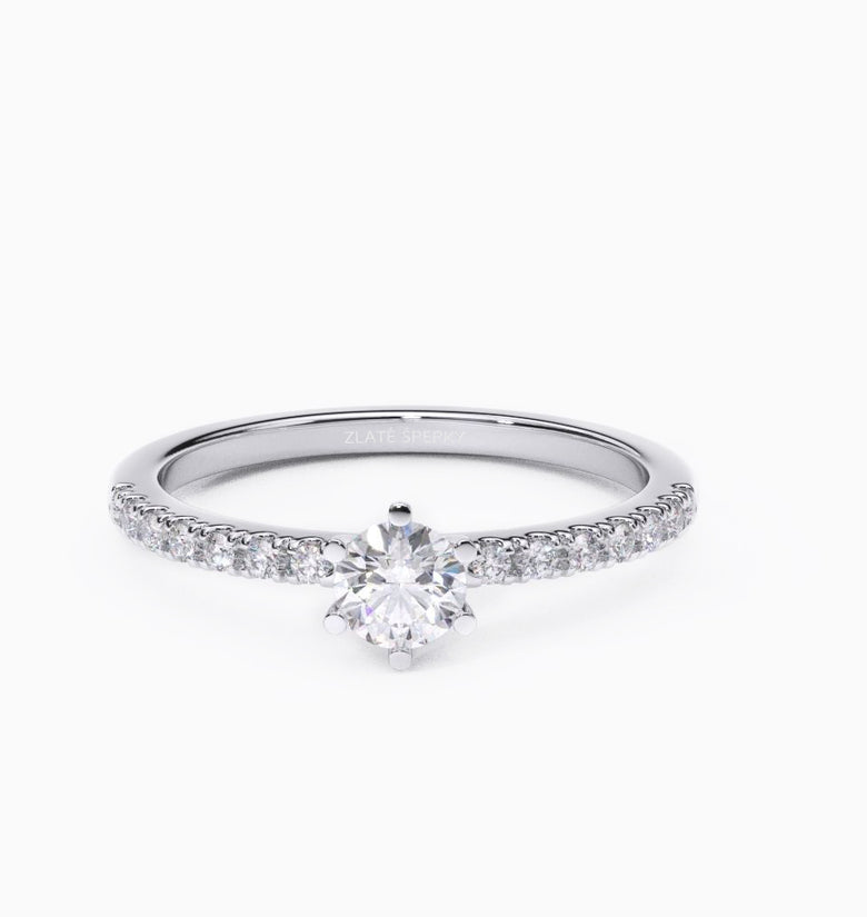 Pro ještě větší oslnivost je prsten doplněn o 14 drobných diamantů o velikosti 1,40 mm, vsazených po obvodu šíny. Jejich jemný třpyt krásně doplňuje centrální kámen a podtrhuje jeho jedinečnost.